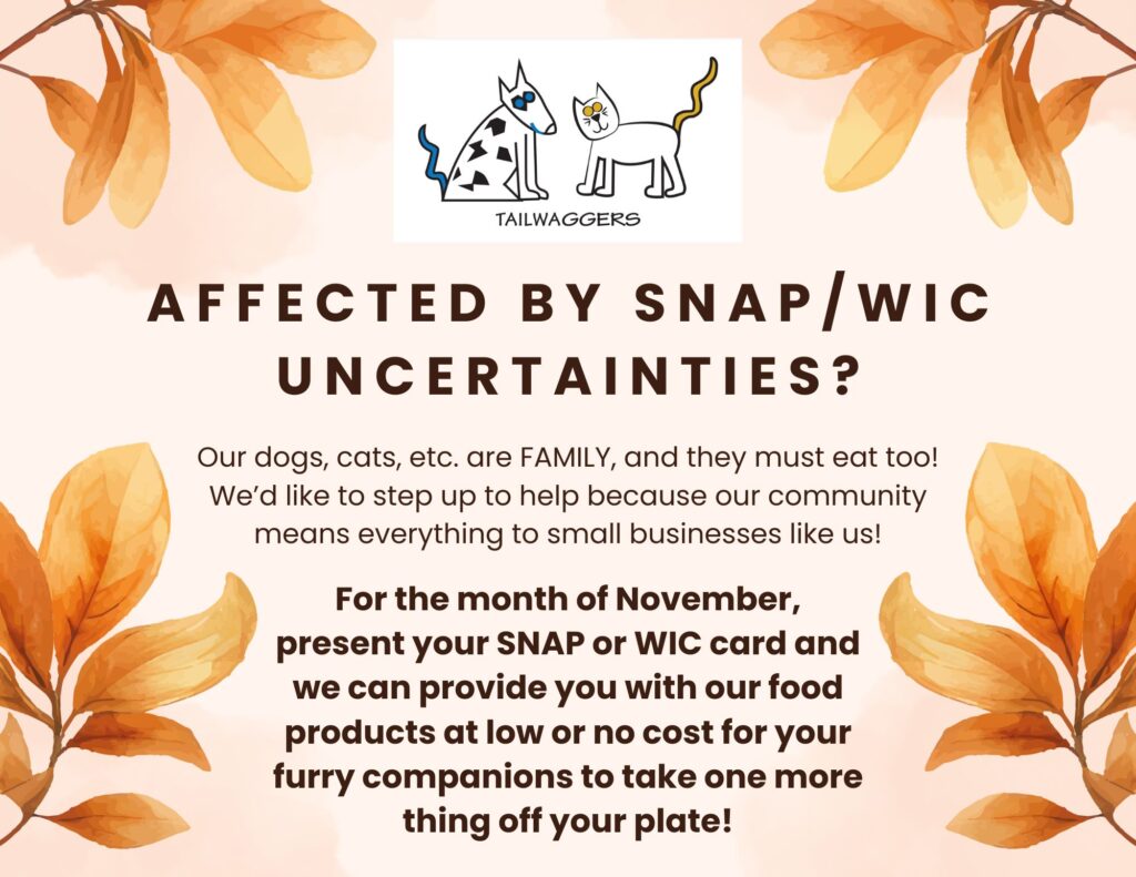 How this works: Show your SNAP or WIC card, and we let you either pick from our new Pet Food Bank and/or name your price for products on our shelves. Negotiable, for sure.